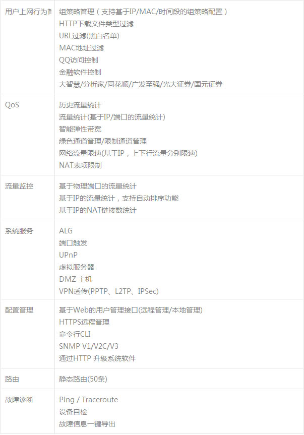 采用全新的硬件架構(gòu),專業(yè)的網(wǎng)絡(luò)處理器,其主頻高達四核1.5G,可以提供千兆線速轉(zhuǎn)發(fā)能力。